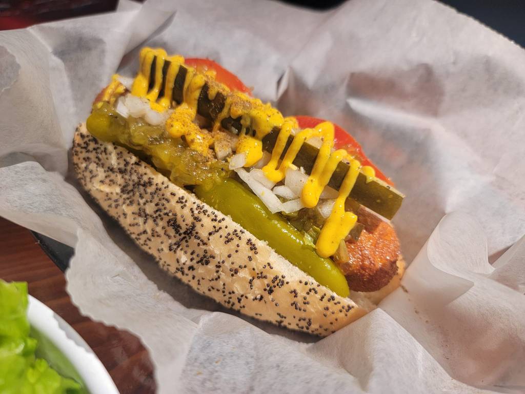 At the advice of my local friend, we took a break from the New York System hot wieners and tried the Chicago style hot dog at Lucky Enough in Providence. I could only finish half because it was the 8th stop of the day, but it wasn’t bad for a Chicago style. They also offer this with a vegan dog! 3/5. #hotdougandgeoff ![]()