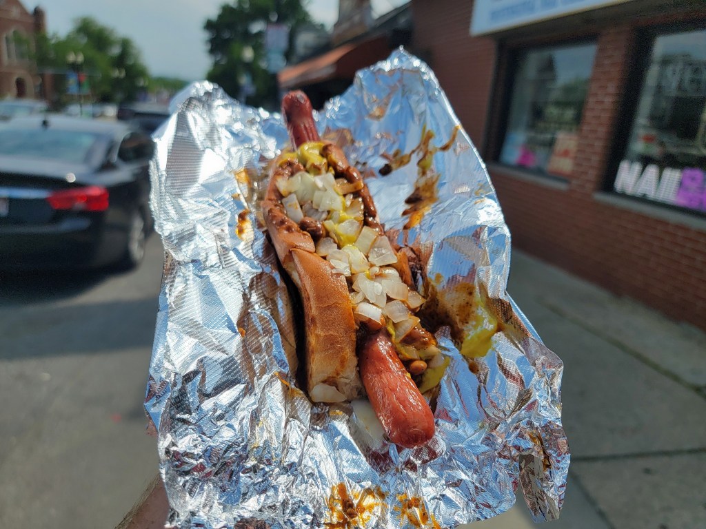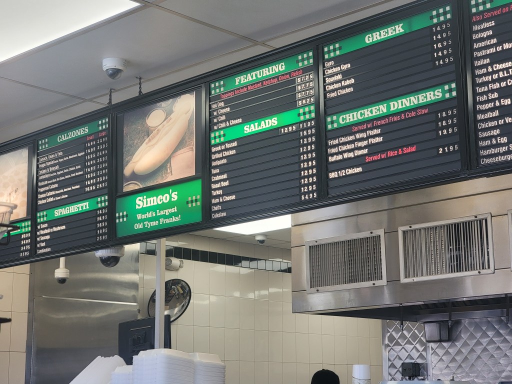 Simco’s on Blue Hill Ave in Mattapan is a historic (1935) neighborhood takeout food spot, known for their footlong hot dogs. Our hotdog had a slice of American cheese under the grilled glizzy with chili, mustard and onions on top of a New England styled buttered bun. Easilly a 4/5 from #hotdougandgeoff.