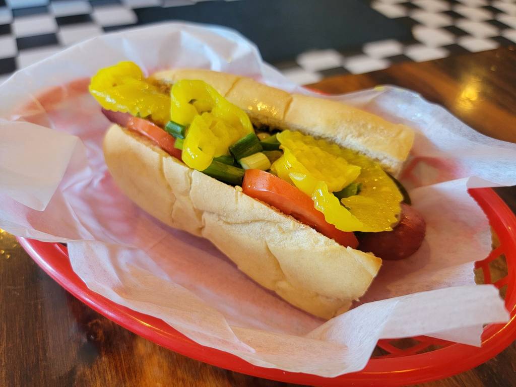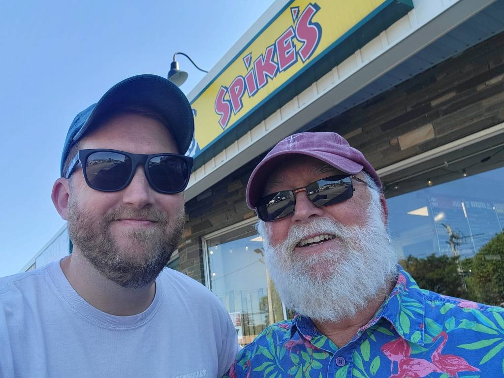 Spike’s Junk Yard Dogs in Warwick! A nice break from the coney style and the homemade fresh buns were to die for. We got the signature Junkyard with an all-beef hot dog, banana pepper rings, tomatoes, and a pickle spear. 4/5 #hotdougandgeoff ![]()