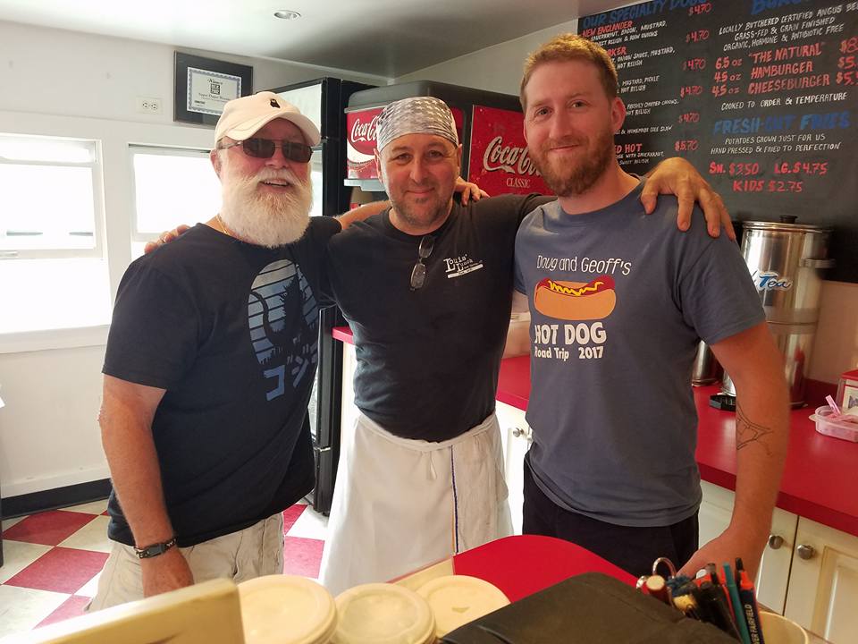 The first perfect five of Connecticut! Thanks to all of you for recommending Super Duper Weenie Truck. We each had a New Yorker without the kraut and the spicy relish was a home run. We even got to meet the owner Gary who breathed life into his old food truck and uses Hummel Brothers hot dogs to make your day. Right when we walked in, he saw our shirts and boomed over the line ahead of us with “Doug and Geoff’s Hot Dog Road Trip?!” Rating: 5/5. #hotdougandgeoff