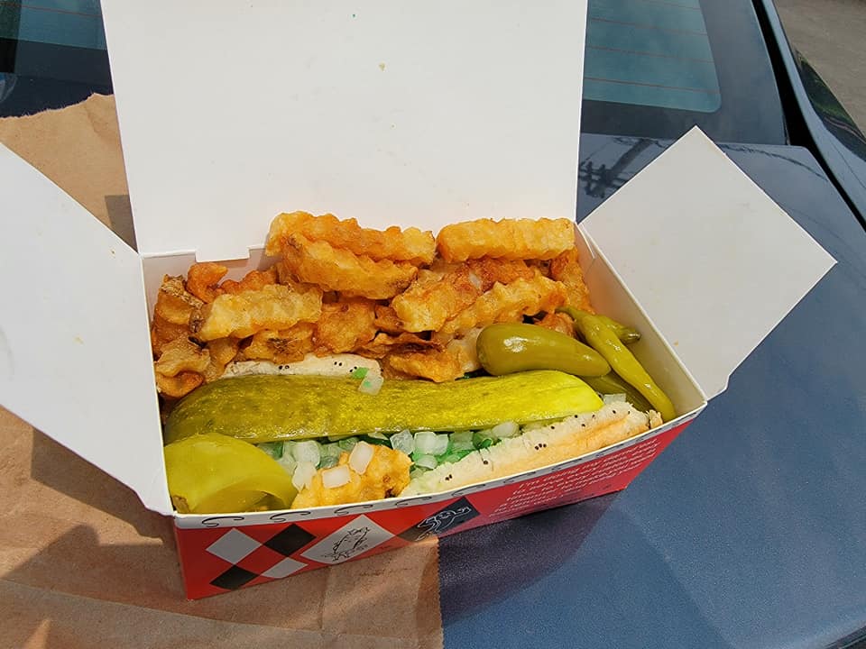 Hello, Chicago! Superdawg Drive-In to kick things off in one of America’s most iconic hot dog cities. A favorite for Chicago-style, the parking lot was packed and there was a line, but there wasn’t a wait. Once we got our hot dogs, we were blown away by the flavor balance and the presentation. What puts this dog over its peers is the unique pickled tomatoes and crinkly fries. 4.5! #hotdougandgeoff ![]()