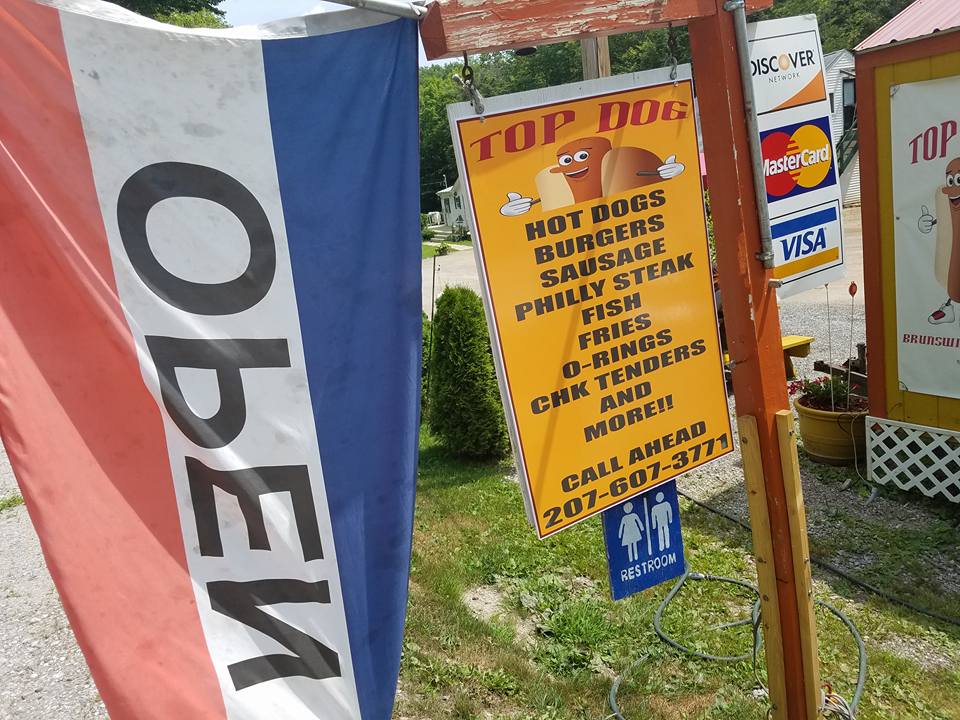 Top Dog in Brunswick, Maine was one of our earliest stops ever and quite memorable. Amazing natural-casing dogs grilled in peanut oil with a spectacular snap. Awesome service, and awesome people – who when they learned about our road trip – gave us the hot dogs on the house. Rating 4/5. #hotdougandgeoff