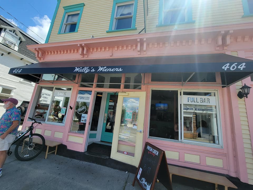 Made it Wally’s Wieners in Newport. We got their signature Wally Dog with a Saugy, toasted bun, bacon, and their house sauce. Enjoyed the wiener but waited over 40 minutes due to the breakfast/brunch crowds in a very touristy town. 3.5/5. #hotdougandgeoff ![]()