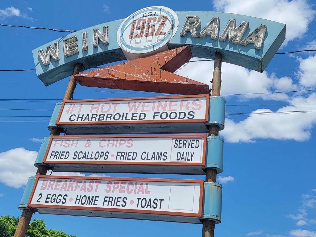 Wein-O-Rama! If there’s one thing we have learned on our road trips, it’s that a line out the door means that we’re in for some really good food. Ate ours off the trunk of the car and we fell in love with the cinnamon-powered meat sauce. It’s hard to miss with their iconic roadside sign. 4.25/5. #hotdougandgeoff ![]()